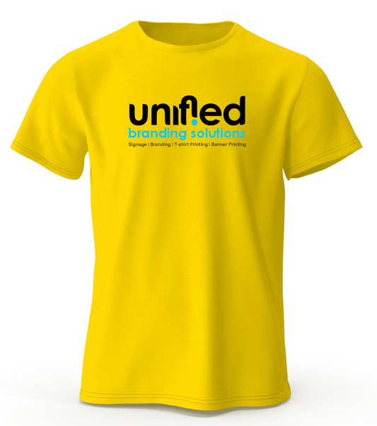 Unified Branding Solutions! your go-to destination for high-quality and affordable T-shirt printing in Johannesburg! We take pride in offering top-notch custom printing services that allow you to express yourself, promote your brand, or commemorate special events with style. Whether you're a business, school, event organizer, or just an individual looking to make a statement, we've got you covered. Our t shirts are 100 percent cotton, ranging from 145gsm, 160gsm, 180gsm, 200gsm and 220gsm. Polyester t shirts also available. These t shirts comes in various sizes and colours.